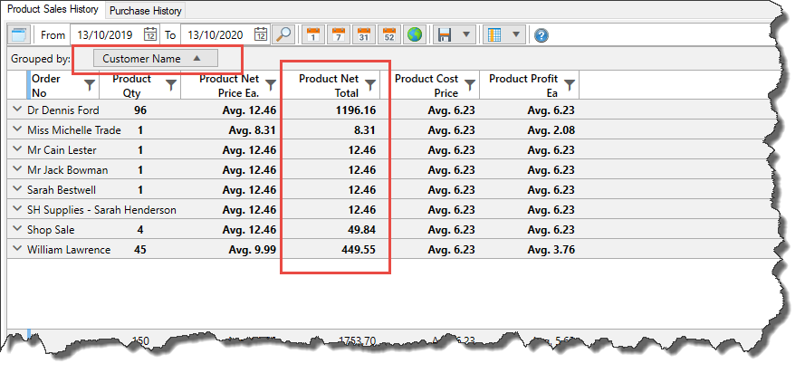 ...and very easily you can see how much each Customer has spent with you on this product in the last year.