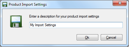 To save your product import settings, click the save button and in the resulting dialogue enter a name for the settings.