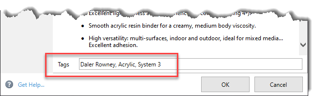Please note: Product tags are only for use with the WooCommerce plugin or paperwork designer as described above. They are not searchable within the main products window.