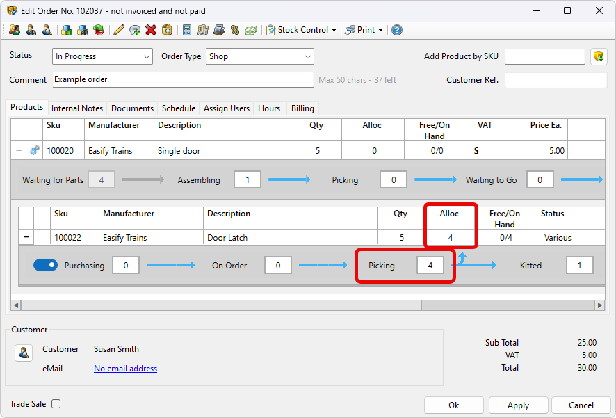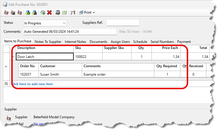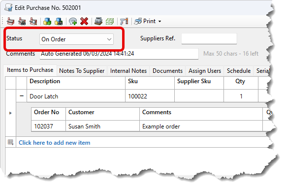 When you are ready to purchase the items, you move the Purchase to On Order and place the order with your Supplier.