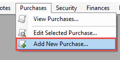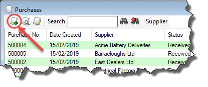 To raise a new purchase in Easify click the Create New Purchase button in the main Purchases window, or alternatively choose Purchases Add New Purchase from the menu bar.