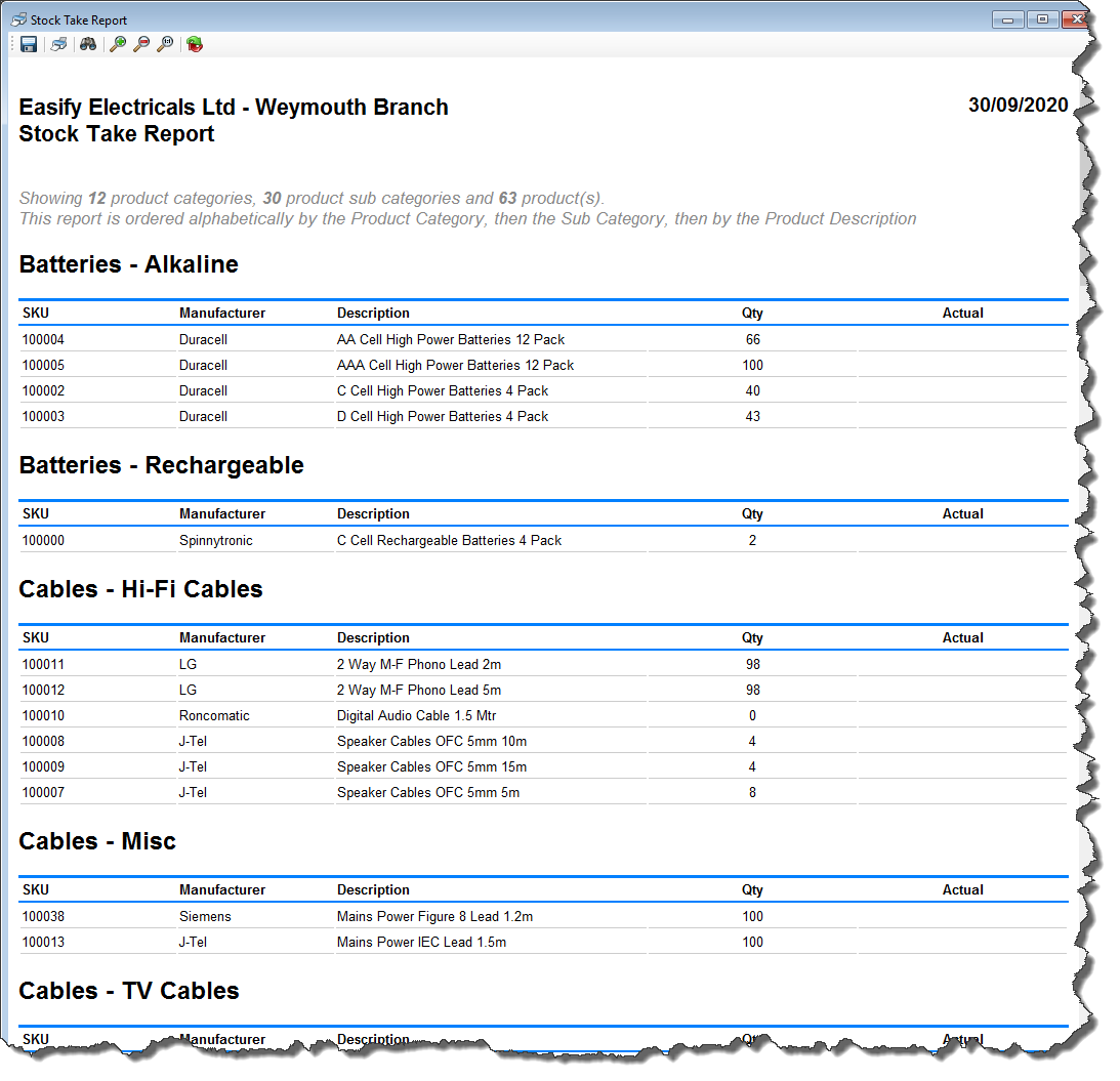 This report will display a list of all your products with the relevant stock levels, enabling you to run a stock take.