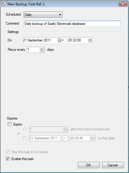 The New Backup Task window will open, allowing you to specify when and how often you want the backup to be run.