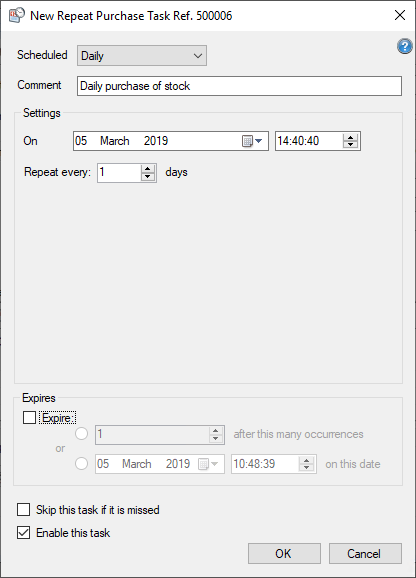 When you have configured the repeat purchase schedule to your liking, click OK and the purchase will be scheduled to run as configured.