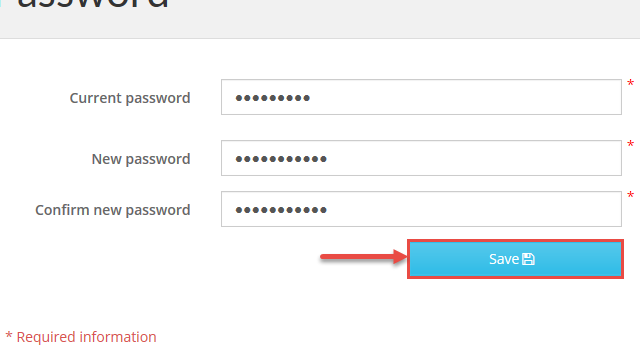 4 - Enter your current password and then your new password in the specified fields. Then click Save.