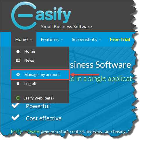 1 - Go to www.easify.co.uk and use your current username and password to login to the website