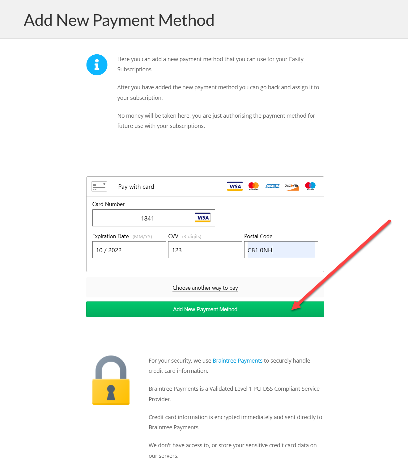 How to change the Payment Details for your Easify Subscriptions