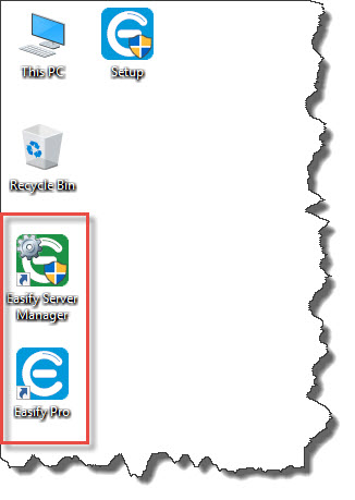 And you will find two shortcuts on your desktop, one for the Easify Server Manager (Green icon) and one for the Easify Pro Client (Blue icon).
