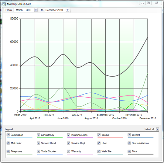 Also new for Feature Pack 5 is an interactive sales report chart...