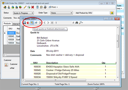If you use Microsoft Outlook for email, with a single click you can save a Quote or Invoice as a PDF to the Easify Document Management System, and automatically attach it as an attachment to an Outlook email.