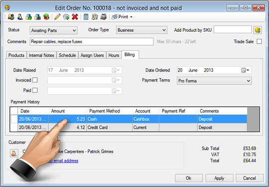 Feature Pack 7 sees the inclusion of Payment History on the billing tab of Orders. Now you can see at a glance all of the payments associated with an order. Simply double click any payment to view or edit its details.