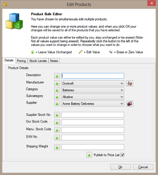 And also by popular request we have created a new bulk product editor that allows you to simultaneously apply changes to as many products as you want. If you need to set the weight of 100 products, just select them, right click them and choose Edit Multiple Products, change the weight and save. Simple.