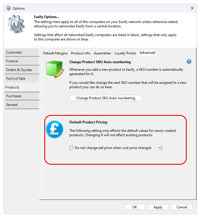 When I create a PO, after clicking "on order" I get the option to update the cost prices of each product. Which in turn updates the trade & retail price. This is usually helpful but on some products I would prefer not to update the sell prices when a cost price changes by a few pence.