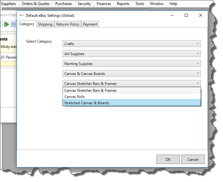 So in other words, you could configure the eBay listings on each and every product that you sell, or if you only ever sold products in one eBay category and using one shipping method, all you would need to do is configure the global eBay channel connector settings once, and every product would inherit those settings...