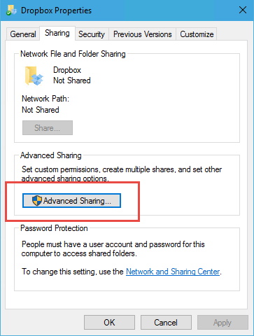Next you need to share the DropBox folder in Windows so that it can be accessed by other computers on your local network. In this example we're using Windows 10, and depending on your network setup or which operating system you are using, what you see on your system may vary from what's shown below. However the principles are the same on all systems.