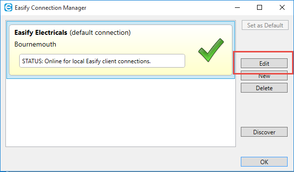 In the Easify Connection Manager, select your Easify Server and click the Edit button.