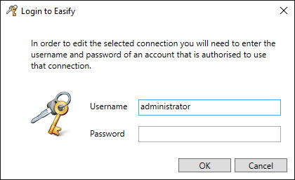 When prompted, enter login credentials of an Easify user that has permission to edit the selected server.