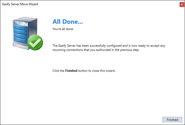 If you have a server that has disabled itself due to detecting that it has been moved since it last successfully ran, you can repair it via the Easify Connection Manager.