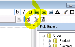 Mergefields can be dragged from the right hand tree view into the text editor in much the same way as you would drag a mergefield onto a document. Alternatively you can type the name of the mergefield directly into the text editor by surrounding it with curly braces {}.