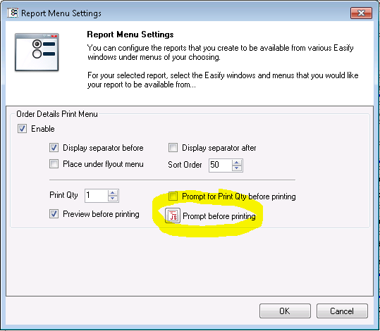 And in the Menu Editor click the Prompt before printing button on the relevant menu.
