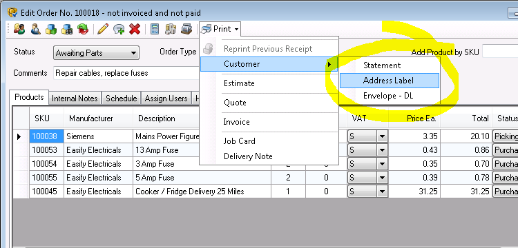 For instance if you create a customer address label document, you will probably want to be able to print it from the Easify main Customers Window.