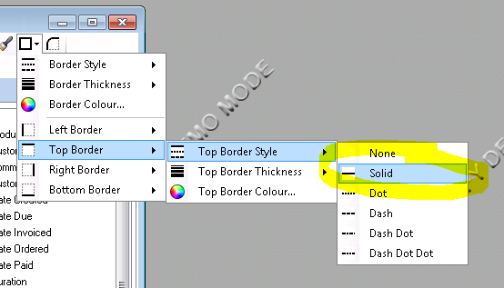Now click the Borders button again and this time select Top Border->Top Border Style->Solid.