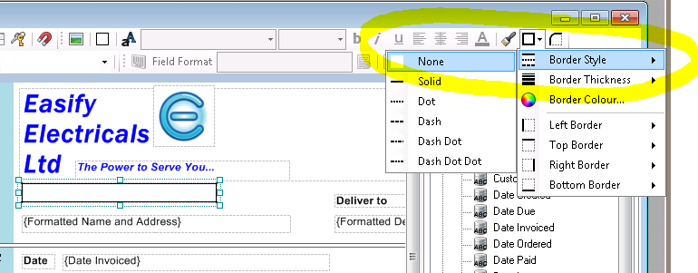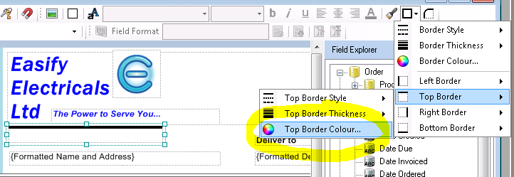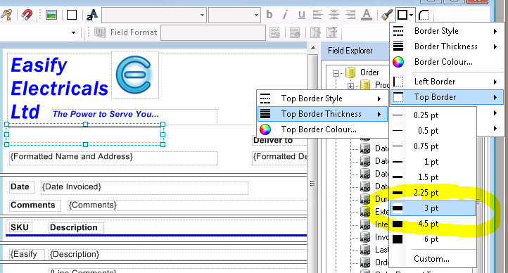 In this example we are going to insert a blue line under our company logo on our invoices.