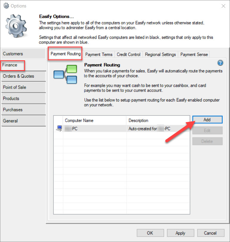 If you've already set up Payment Routing on your PC, or if you have used your PC as a till or as a Point of Sale you won't need to do this step.