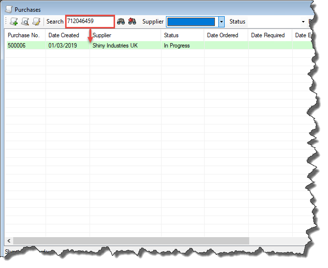 If you later wish to find the purchase that an item was bought in on, for example in the case of an item being returned for warranty replacement, simply search for the serial number from the main purchases window and you will be shown a list of purchases that contain that serial number.