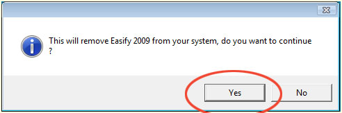 When asked whether you want to remove Easify from your system, click the Yes button.