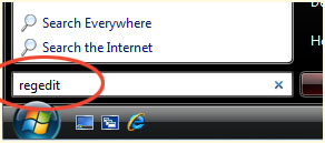 Click the Start button and in the run box, type regedit and then press the Enter key.