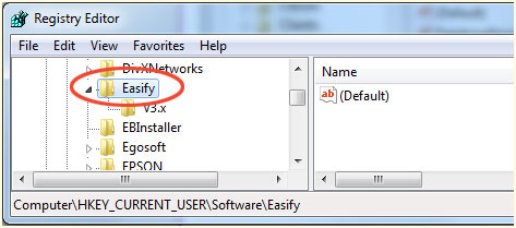 Still in the registry Editor navigate to the Easify key in Computer\HKEY_CURRENT_USER\SOFTWARE\, right click the Easify key and select Delete to delete it.