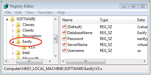 In the registry Editor navigate to the Easify key in Computer\HKEY_LOCAL_MACHINE\SOFTWARE\, right click the Easify key and select Delete to delete it.