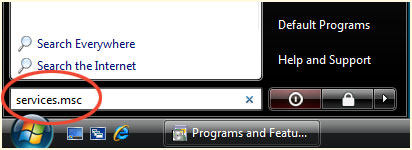 Click the Start button and in the run box, type services.msc and then press the Enter key.