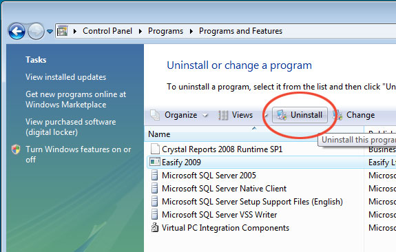 Easify makes use of a number of 3rd party software applications including Crystal Reports 2008 and Microsoft SQL Server 2005. These components must be uninstalled separately from Easify 2009 itself.